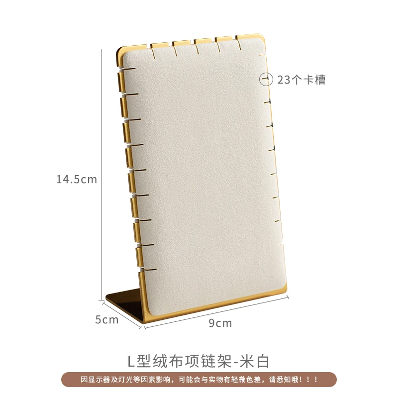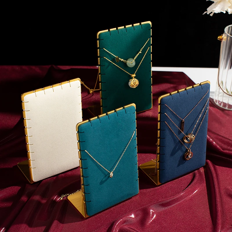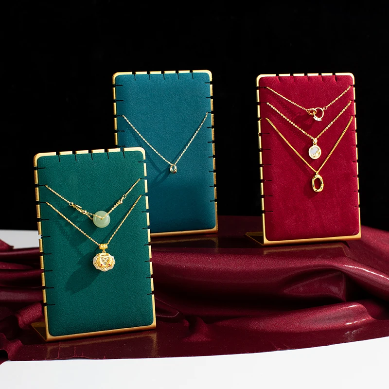 Showcase your jewelry with sophistication using this Velvet Metal Necklace Holder Pendant Display Shelf, designed for professional presentation and packaging. Crafted from durable metal with a soft velvet coating, this display stand adds a luxurious texture that highlights necklaces, pendants, and accessories beautifully. Perfect for jewelry stores, boutiques, exhibitions, or personal collections, it elevates your presentation with a sleek, modern aesthetic while protecting each piece from scratches or tangles.