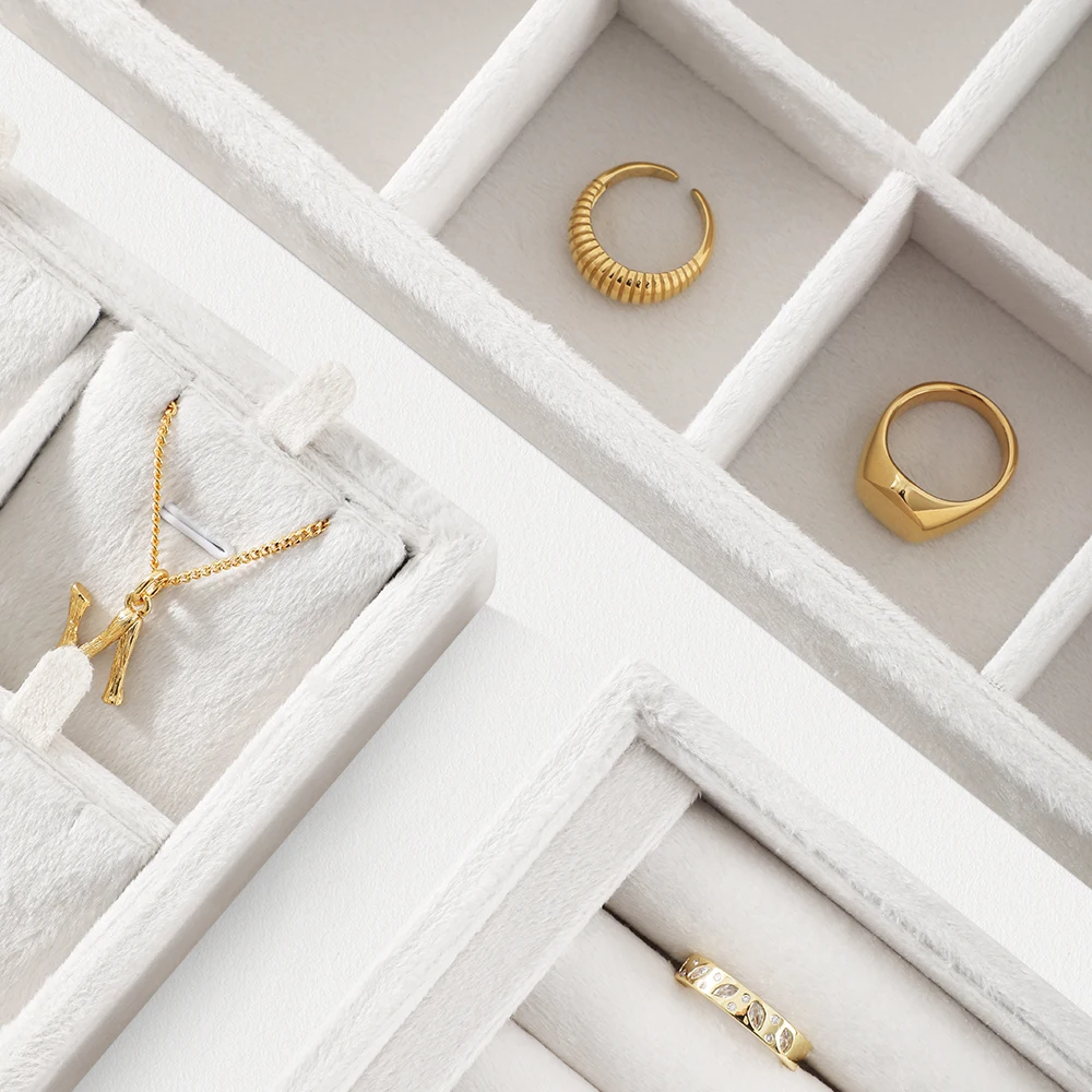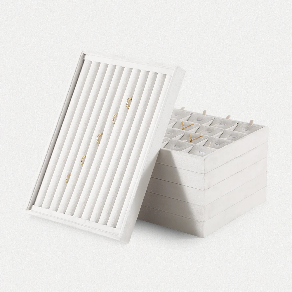 The soft velvet surface protects jewelry from scratches while providing a refined, professional appearance. Each tray is designed with stackable structure, enabling flexible storage that adapts to home use or retail counter environments. The tactile velvet texture and fine stitching present your jewelry with high-end detail, making this not just storage, but elegant display packaging.